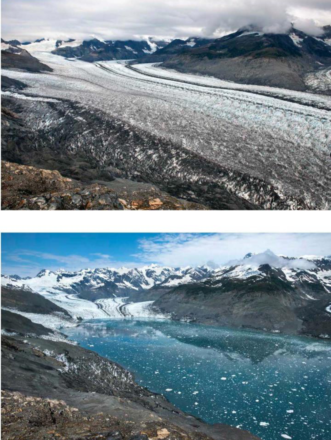 Melting and ice loss aren’t uniform — edge glaciers and coastal outlet glaciers (the ones that end in the sea) are retreating, calving (breaking off into icebergs), and thinning.